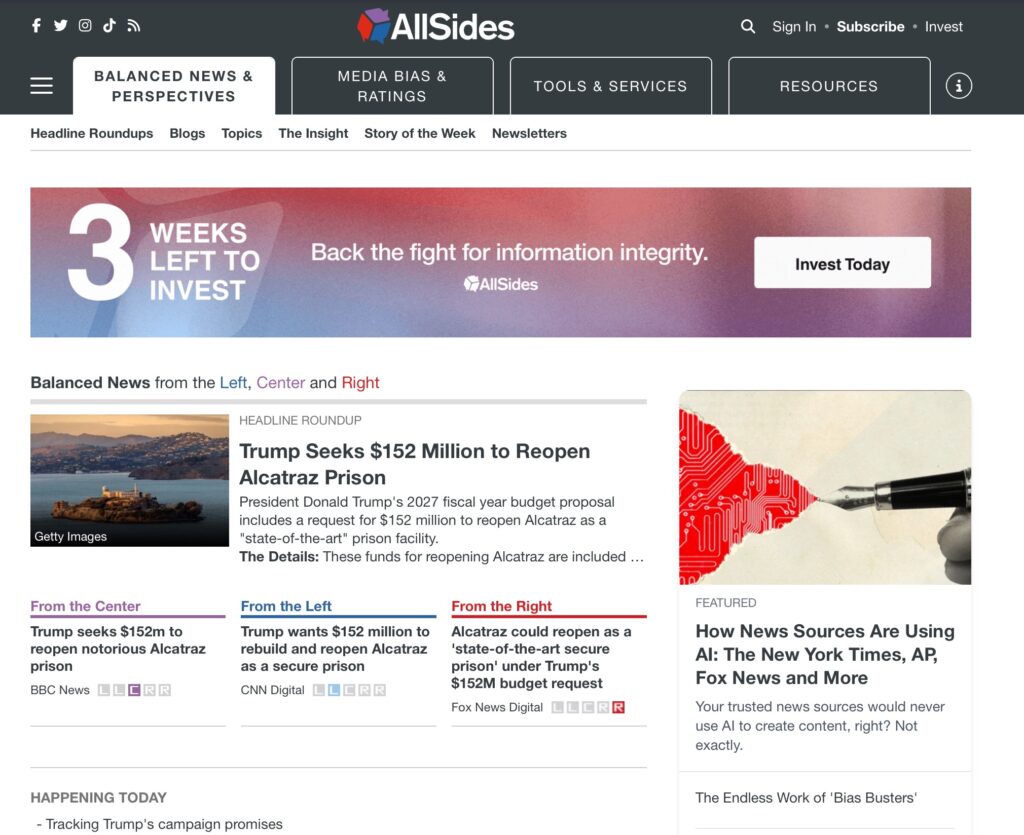 This one is interesting. They show you the same news story from the Left, Center, and Right side-by-side. It’s a great way to see how the “grift” works on both sides of the aisle so you can find the truth somewhere in the middle.