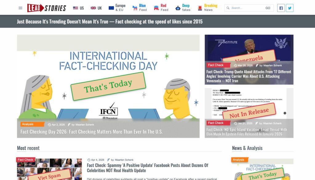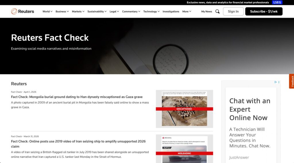 These guys are the “just the facts” heavyweights. Founded in 1851, Reuters operates on a set of “Trust Principles” that prioritize independence and freedom from bias. They don’t do “hot takes” or “opinion pieces” masked as news. Their fact-check unit focuses on the big stuff: manipulated videos, fake social media claims, and political gaslighting. They show you exactly where the information came from and how they verified it. It’s dry, it’s professional, and it’s a great way to clear the smoke.