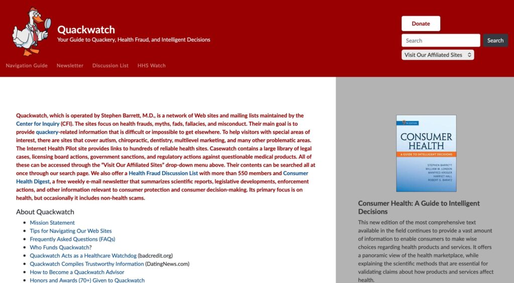 It looks like a website from 1996, and that’s because the guy running it has been fighting health fraud since the 80s. Dr. Stephen Barrett has zero patience for “fads and fallacies.” It’s an old-school archive of every medical hustle known to man. If a “guru” is peddling it, Barrett has probably already written a 10-page takedown of why it’s nonsense.